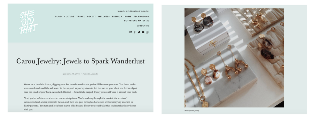 `She Did That’ Launch E Magazine https://www.shedidthat.network/blog/carou-jewelry-for-your-wanderlust