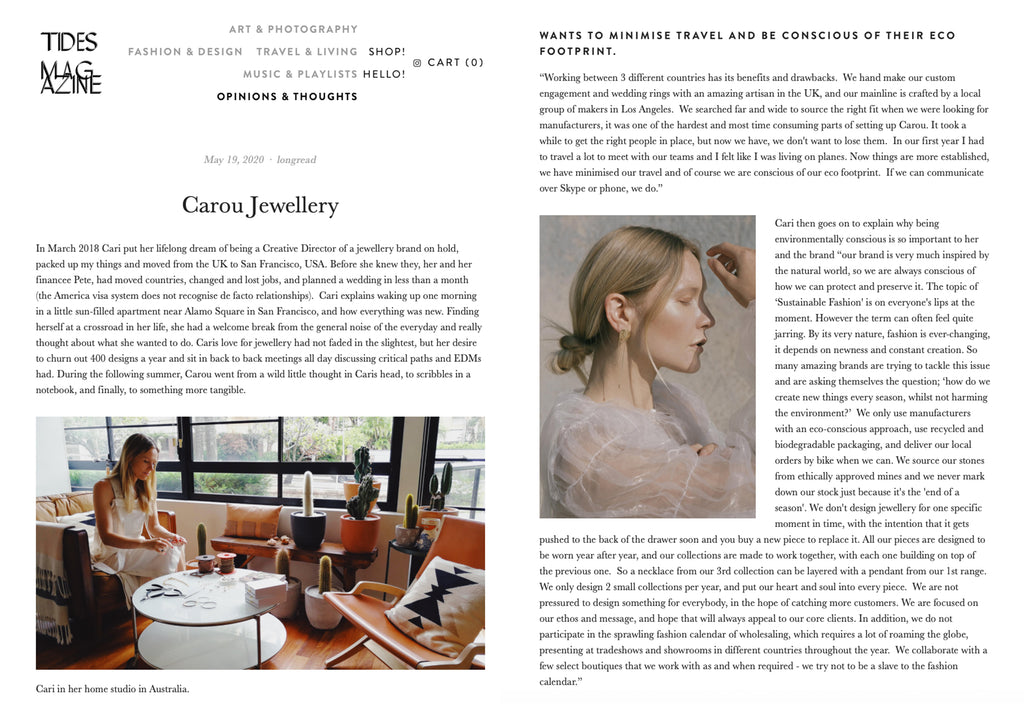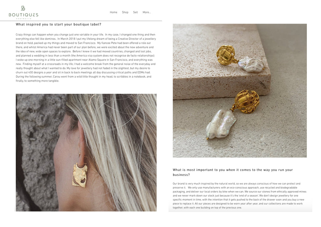 Boutiques Australia, January 2021 https://www.boutiquesaustralia.com.au/ post/behind-the-brand-carou-jewellery